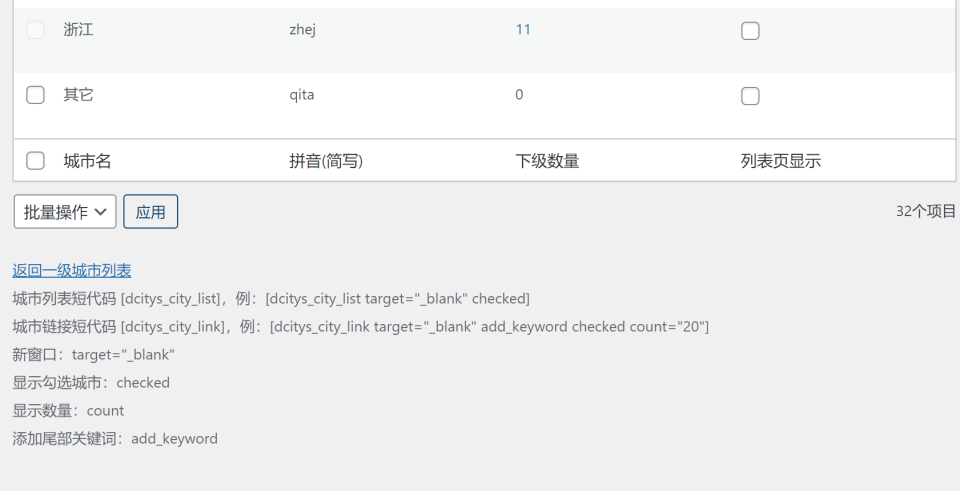 Dcitys怎么設置城市列表頁面admin2023年7月2日建站幫助 城市列表頁面顯示所有的城市鏈接,設置頁比較簡單,首先在后臺添加一個頁面,輸入城市列表的簡碼,簡碼為 dcitys_city_list ,相關參數在城市列表下方,其中尾部關鍵詞為在站群設置中進行填寫。 生成的列表如下 標簽# 使用幫助# 城市分站# 插件# 站群 上一頁 文章 城市分站插件基礎設置一 下一頁 文章 如何提高網站收錄量、提升網站搜索權重 相關文章 DcityS城市站群3.1.0更新功能 Dcitys城市分站插件3.0.6新功能 Dcitys城市分站插件3.0升級說明 Dcitys 城市分站更新記錄 分站城市列表頁設置 簡碼匯總-Dcitys城市分站設置 Dcitys城市分站?使用配置匯總 分站發布不同文章-Dcitys城市分站 小工具-Dcitys城市分站 分站頁面添加城市名-Dcitys城市分站 分站設置不同聯系方式-Dcitys城市分站 網站底部分站鏈接-Dcitys城市分站
