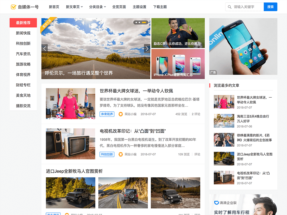 自媒體一號是一款由主題巴巴團隊原創設計開發的WordPress主題,這款主題頁面布局簡約大氣,設計細節精美考究,內置功能非常強大,通過后臺的主題設置面板,你可以輕松自定義各種主題選項,讓自己的WordPress網站變得更漂亮,更好用,更專業。這款自媒體一號主題非常適合用于各類型博客,個人網站,資訊網站和自媒體網站。