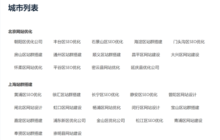 城市列表頁面顯示所有的城市鏈接,設置頁比較簡單,首先在后臺添加一個頁面,輸入城市列表的簡碼,簡碼為 dcitys_city_list ,相關參數在城市列表下方,其中尾部關鍵詞為在站群設置中進行填寫。 …