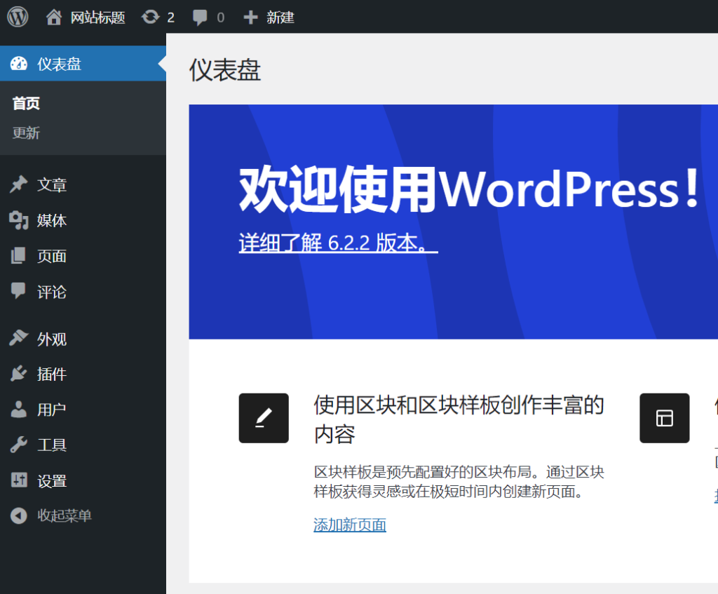 11、登錄后,WordPress 后臺界面,使用最多的功能有下面幾個