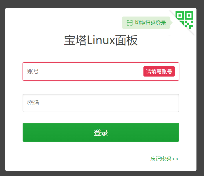 打開外網登錄地址,登錄寶塔面板,用戶名密碼在安裝寶塔面板后的提示信息中